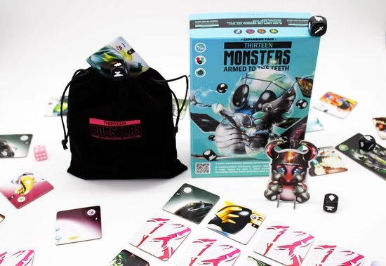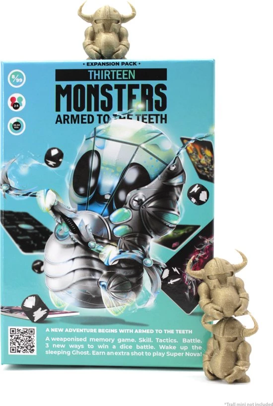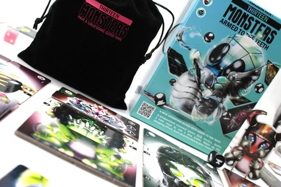 13 Monsters: Armed to the Teeth is een uitbreidingsset op 13 Monsters – The Game. Bouw sterke monsters en rust ze uit met het ultieme wapen, harnas en schild. Onze kleine metaalsmid ‘Trall’ zal je helpen, maar je zult wel tactisch te werk moeten gaan om te winnen. Wil je een sterke aanvaller hebben? Ga dan voor de gloednieuwe Metaalmonsters, die hebben geen gevechtsuitrusting nodig!