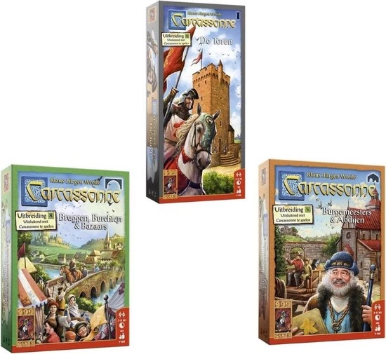 Nieuwe versie van de uitbreiding op het populaire legspel Carcassonne Bouw gezamenlijk aan torens om meeples van andere spelers gevangen te nemen. Als 2 partijen een meeple van elkaar hebben opgesloten, wisselen ze deze weer uit. Meeples zijn te beschermen door een toren in bezit te nemen. In combinatie met het basisspel is deze uitbreiding met ten hoogste 5 spelers te spelen, maar met Kathedralen & Herbergen kan er nog een speler meedoen. Carcassonne: De Toren is de ideale uitbreiding voor spelers die het een genot vinden om hun tegenstanders goed dwars te zitten.Hoe combineer ik de verschillende Carcassonne-producten?