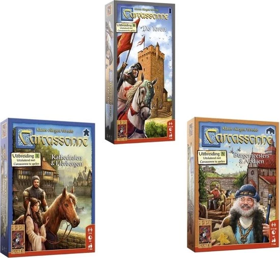 Nieuwe versie van de uitbreiding op het populaire legspel Carcassonne Bouw gezamenlijk aan torens om meeples van andere spelers gevangen te nemen. Als 2 partijen een meeple van elkaar hebben opgesloten, wisselen ze deze weer uit. Meeples zijn te beschermen door een toren in bezit te nemen. In combinatie met het basisspel is deze uitbreiding met ten hoogste 5 spelers te spelen, maar met Kathedralen & Herbergen kan er nog een speler meedoen. Carcassonne: De Toren is de ideale uitbreiding voor spelers die het een genot vinden om hun tegenstanders goed dwars te zitten.Hoe combineer ik de verschillende Carcassonne-producten?