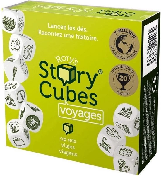 Met de Rory?s Story Cubes Voyages cre?er je oneindig veel verhalen vol heldhaftige avonturen. De dobbelstenen bevatten afbeeldingen die te maken hebben met reizen en avontuur. Rol de dobbelstenen en verzin verhalen aan de hand van de negen zichtbare afbeeldingen. Begin je verhaal met ?In een land hier ver vandaan..? en start je avontuurlijke reis.