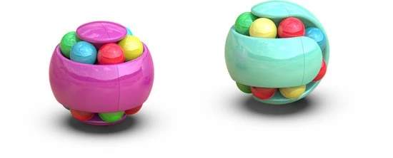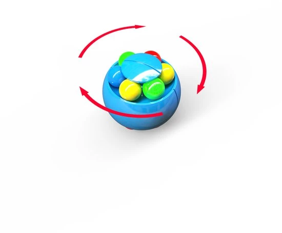 Door het halfronde gedeelte te draaien en de kleine gekleurde bal te verschuiven, zorgt de Magic Spin Ball ervoor dat de kleur van de kleine gekleurde bal op en neer gaat om de oorspronkelijke staat te herstellen.