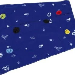 Vang de vis met het houten spel balamari. In het doek zitten vier gekleurde openingen om vis mee te vangen. Pas op voor de zwarte gaten, deze zitten vol hongerige haaien en die eten zo al je vis op! Wie heeft de meeste vis gevangen?