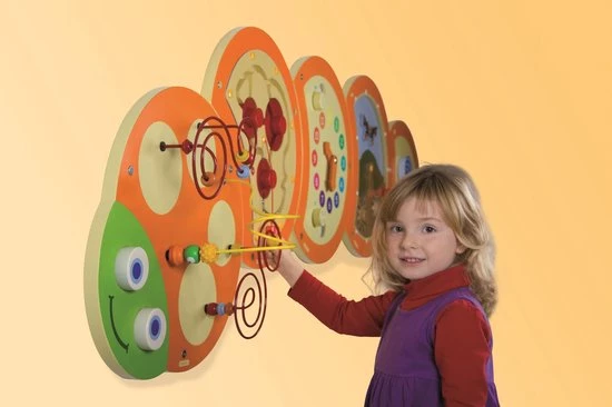 Speel met dit leuke kralenframe in de vorm van een rups. Hang hem aan de muur in een speelkamer, slaapkamer of wachtkamer.