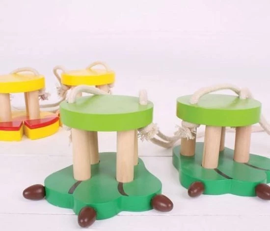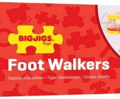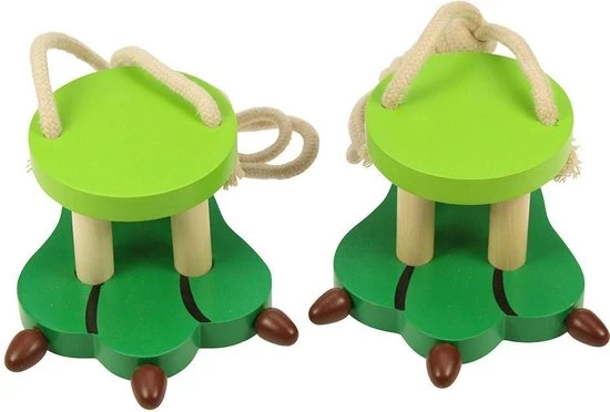 Deze lichtgewicht houten Footwalkers of loopklossen zijn fel gekleurd en ontworpen voor kleine voetjes. Stap er op, vasthouden aan de touwen, en dan uitdokteren hoe je je eerste stappen moet zetten!
