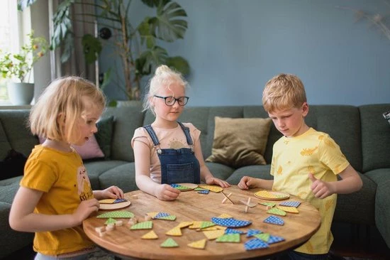 | Verpakkingsinhoud | 40, houten, stukjes, 4, platen, 2, tollen, 12, tokens |