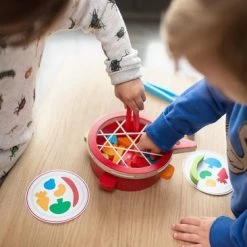 Gooi de dobbelsteen en draai de deksel op de goede kleur. Gebruik nu de pincet om de juiste groente te pakken. Leg hem daarna op je bard. Maar laat hem niet vallen, want dat zou natuurlijk zonde van het eten zijn!