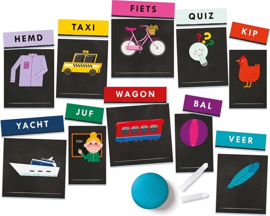 | Verpakkingsinhoud | 10, schrijfbordjes, 10, woordkaarten, krijtbordje, krijt, wisser, kunnen. |