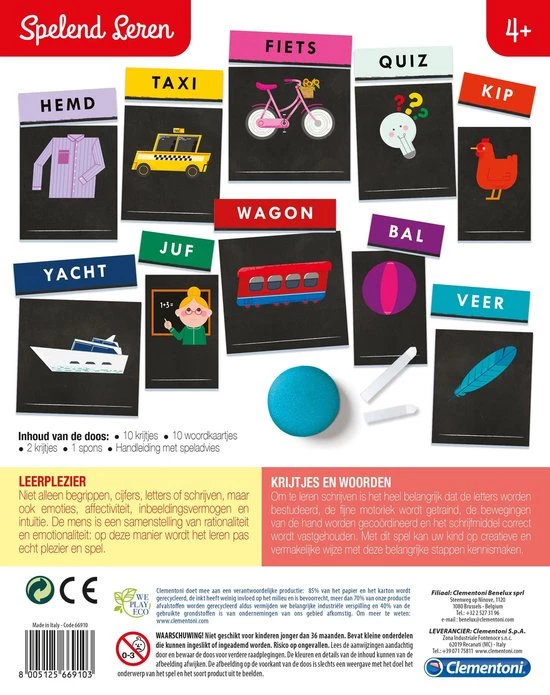 Clementoni – Spelend Leren – Krijtjes En Woordjes Educatief Spel
