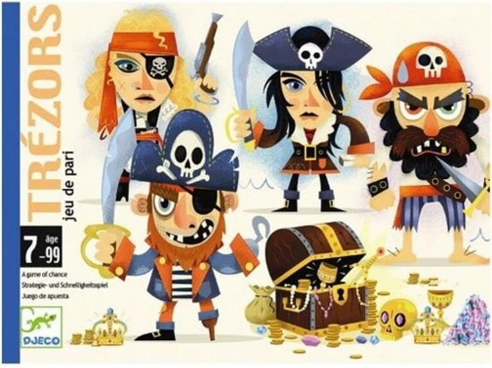 Een strategisch kaartspel van het Franse merk Djeco met schitterende illustraties van piraten en schatten.