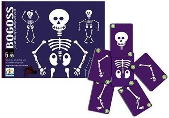 6 delen van een skelet vinden, wat een gekke uitdaging.. Maar let op gebroken botten. Een ruilspel met lichtgevende kaarten om zodoende ook in het donker te kunnen spelen.