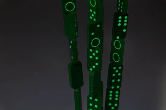 28 houten dominostenen met lichtgevende stippen