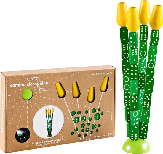 Een gezelschapsspel en woonaccessoire in ??n! Dit dominospel speel je volgens de traditionele regels, maar hebben een moderne look. De stenen en tulpen geven dankzij de glow in the dark verf licht in het donker.