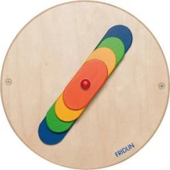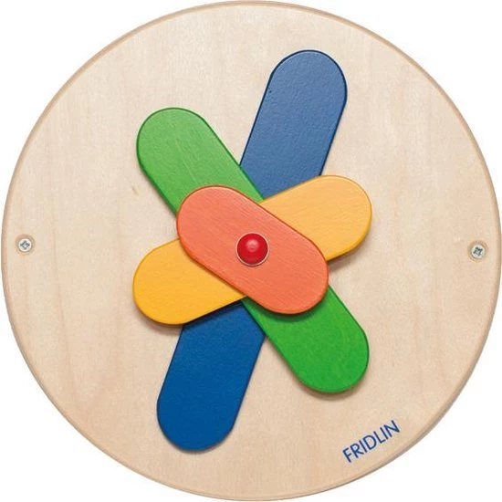 Draai wandspel van hout. Herken mechanische relaties en train de fijne motoriek. De kleuren veranderen en mengen zich. Hoe vaardiger de propellerbladen worden aangedreven, hoe groter het speelplezier. Afmeting: 24 cm doorsnede. Geschikt voor kinderen vanaf 1 jaar.