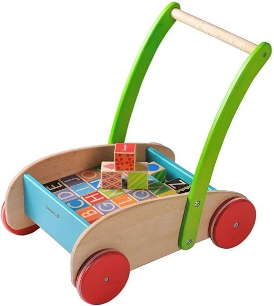 Spelenderwijs leren om de eerste stapjes van jouw kleintje te begeleiden? Met deze loopwagen van hout heeft jouw kind de mogelijkheid om zitten met de blokjes te spelen en dit vervolgens rond te brengen. Verder is dit product FSC? gecertificeerd.