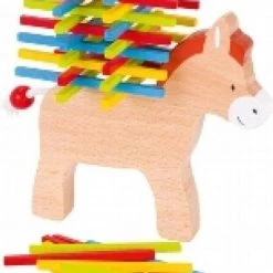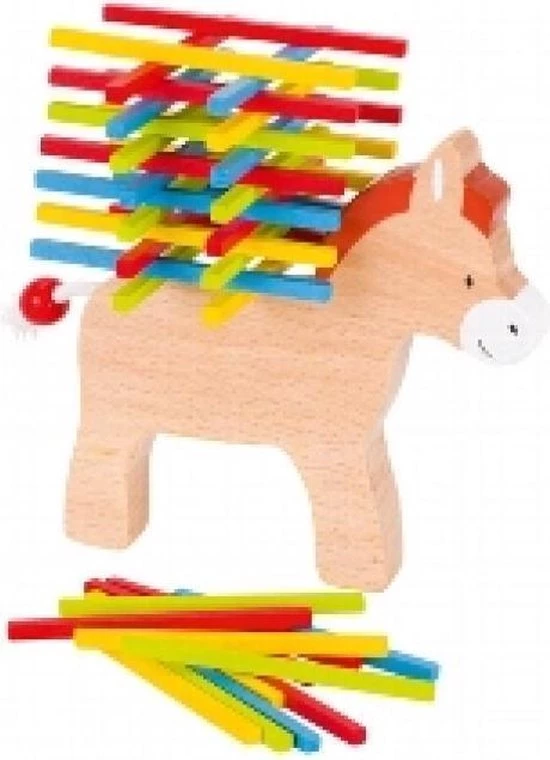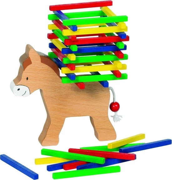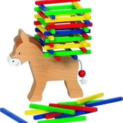 Stapel alle staafjes op elkaar en balanceer alles op de ezel!