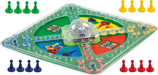 Als eerste speler al je 4 pionnen het bord rond laten gaan en je pionnen achter elkaar krijgen bij de finish!