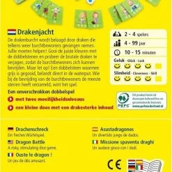 Inhoud: 4 drakenplaatjes, 1 groot waterbronplaatje, 20 burchtbewonersplaatjes, 8 narrenplaatjes, 4 gekleurde dobbelstenen, 1 handleiding.