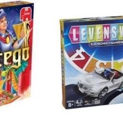 In deze moderne versie van het bekende spel Levensweg regel je alle geldzaken met de elektronische geldautomaat. Geen cash geld, maar bankpasjes dus! Bewaar je miljoenen op je bankpasje en rij met je auto van start tot pensioen. Kies je levensweg en je stapt in een spel boordevol avontuur, gezinsleven en onverwachte verrassingen. Als iedereen gepensioneerd is, wint de rijkste speler.