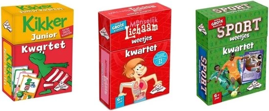 Menselijk Lichaam Kwartet Kwartet is het leukste kaartspel voor de hele familie. Op de kaarten staan de mooiste plaatjes en leukste weetjes. Hoe komt het bijvoorbeeld dat je moet plassen wanneer je water hoort? Inhoud 38 extra grote, gelamineerde speelkaarten+ spelregels. Speelduur 20 min. Aantal spelers 2-4. Leeftijd 6+.