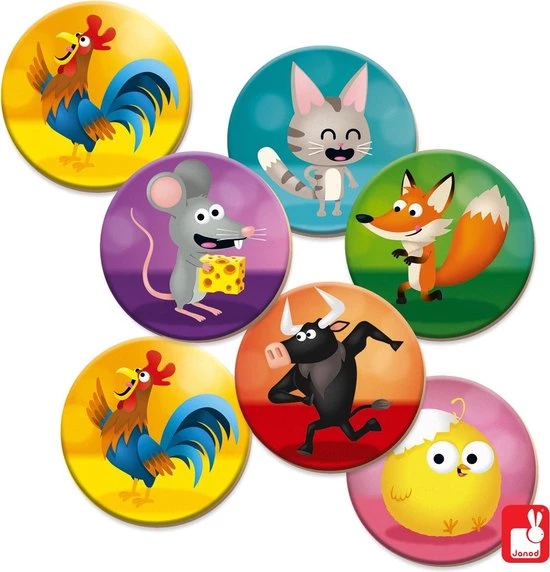 Geheugenspel voor kinderen tussen 3 en 7 jaar. 2 tot 6 spelers. 40 kaarten. Amuseer je met het terugvinden van alle dierenparen! Het ideale kaartspel voor het ontwikkelen van concentratie en visueel vermogen bij de kleinsten.