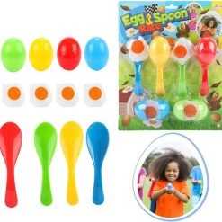 Balanceer het ei op de lepel en race! Win het spel door als eerste te finishen zonder je ei te laten vallen. Valt je ei uit zijn schil? Start dan opnieuw en probeer de anderen voor te zijn.