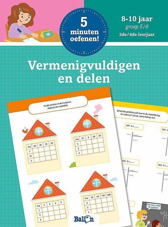 Ballon Media educatieboek 5 minuten oefenen vermenigvuldigen en delen