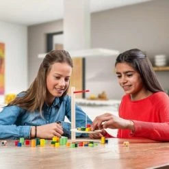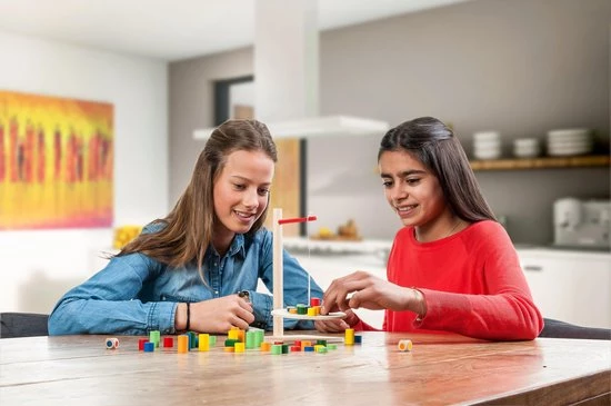 Dobbel en plaats een gekleurd blokje op de weegschaal zonder dat er een ander blokje afvalt. Stimuleert een betere motoriek en helpt met het leren van kleuren. Te spelen van 1 tot en met 6 spelers. Inclusief 42 blokjes, 1 dobbelsteen en 1 standaard. Niet geschikt voor kinderen onder 3.