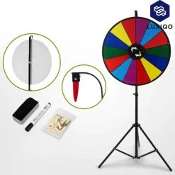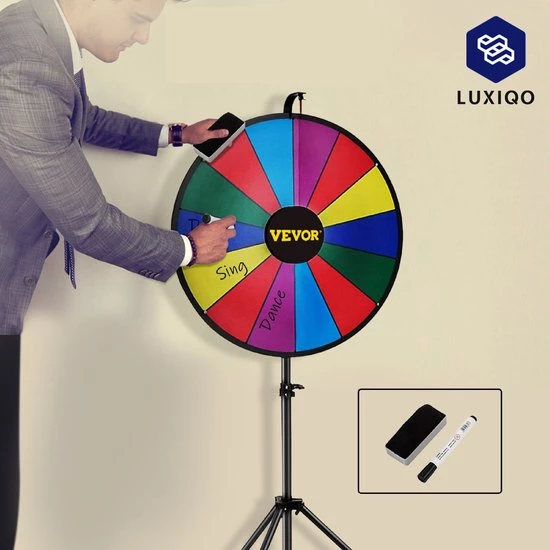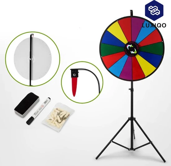 ✓ Het leukste gezelschapsspel: Het draairad van het Rad van Fortuin bestaat uit 14 gekleurde vakken waar je met de bijgeleverde markeerstiften op kunt schrijven. Ben je klaar met het spel? Dan veeg je de teksten net zo eenvoudig weer weg. Hierdoor is het rad voor iedere gelegenheid inzetbaar!