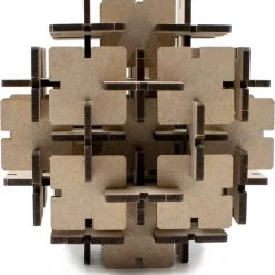 Deze houten IQ puzzel is gebaseerd op de geometrische lampenreeks van MEUQ Design. De puzzel is een uitdagend klein werkstuk dat enige denk inspanning vereist. Met deze originele onmogelijke puzzel ben je zeker een tijdje zoet!