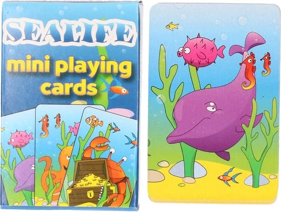 Merkloos 2x Pakjes Mini Zeedieren Thema Speelkaarten 6 X 4 Cm In Doosje Van Karton – Handig Formaatje Kleine Kaartspelletjes