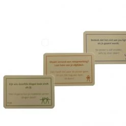 Het 60-dagenplan bestaat uit een doosje met 60 tipkaartjes en een instructie voor de ouder, verzorger of begeleider. Je bespreekt elke dag een tip met je kind. Doordat je kind de tips gebruikt, wordt het stapje voor stapje mentaal sterker. Hoe sterker je kind mentaal is, hoe minder het gepest wordt.