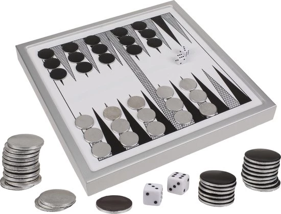 Merkloos Luxe Backgammon Spel Met Metalen Fiches – 24 X 24 Cm – Leuk Als Vaderdag Cadeau
