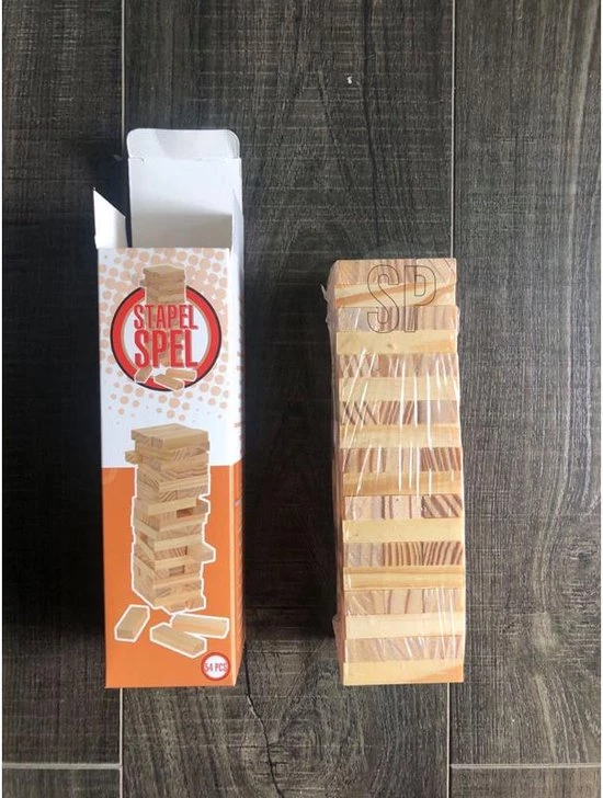 Merkloos Stapeltorenspel Hout 19×5,5×5,5cm