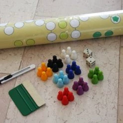 De sticker met het spelbord heeft luchtkanaaltjes in de lijmlaag en is daardoor eenvoudig te plakken zonder luchtbellen. Na het plakken kun je de overstekende randen met het mesje precies langs de rand van het tafeltje afsnijden.