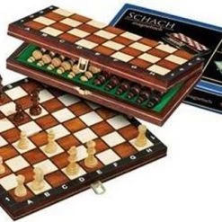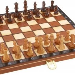 Schaak kassette, magneetsluiting, esdoorn, 30 mm veld, 48 mm Koningshoogte. Verzwaarde stukken met viltsokkel, Staunton, esdoorn. 265 x 130 x 40 mm.