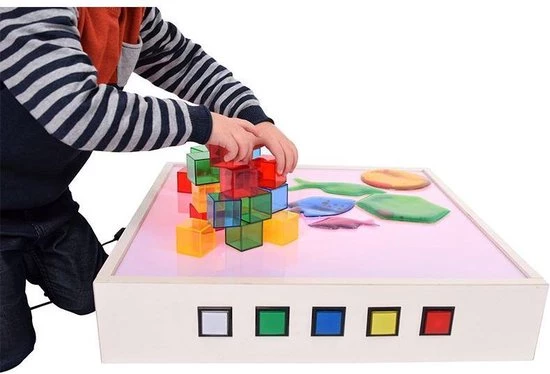 Een lichttafel is een vlak, reflecterend oppervlak, zoals een tafelblad met daaronder een lichtbron en het licht schijnt tot aan de bovenkant van de tafel. Het is mogelijk om de light-up box op de vloer of tafel te gebruiken. Het is geweldig voor zintuiglijk spel en observaties. De lichttafel blijkt dan ook een geweldige plek om op hoog niveau na te denken, te experimenteren en te converseren. Omdat het een leercentrum wordt met steeds meer mogelijkheden voor wetenschap, wiskunde, schrijven en communicatieve vaardigheden.