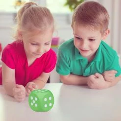 Getallen oefenen makkelijk gemaakt! Met de kleurrijke dobbelstenen van zacht schuimstof kan je de kleintjes gegarandeerd met eenvoudige reken-opdrachtjes stimuleren. De extra lichte dobbelstenen in lichtgroen, oranje en roze zijn geweldig voor in de cr?che en de kleuterklas.