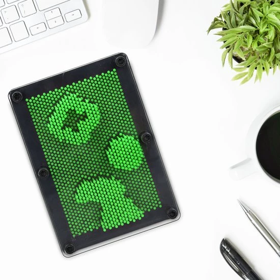 Met dit spijkerspel creëer je steeds opnieuw artistieke vormen en laat je je scheppingsdrang helemaal los. Zo kan je je handen, vingers of bepaalde voorwerpen tegen de pinnetjes drukken en op die manier een originele afdruk creëren. Door het acrylglas kan je je meesterwerk aanschouwen. Het retro pinart spel is niet alleen een leuke bezigheid voor groot en klein, het is ook een leuke toevoeging aan je woning, waar het dienst doet als excentrieke woondecoratie.