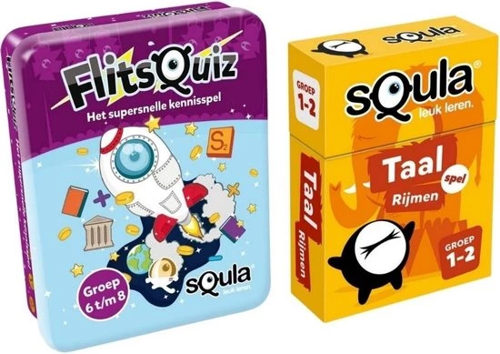 Met het Squla taal kaartspel ga je op zoek naar woorden die op elkaar rijmen. Je draait twee kaarten om en zoekt op elke kaart iets wat op elkaar rijmt, waarbij je je fantasie mag gebruiken. Er is dus niet ??n oplossing of ‘juiste’ combinatie maar er zijn juist vele mogelijkheden. Spaar zoveel mogelijk setjes en win! Geschikt voor groep 1 en 2.