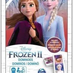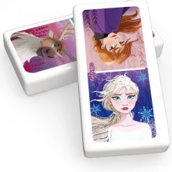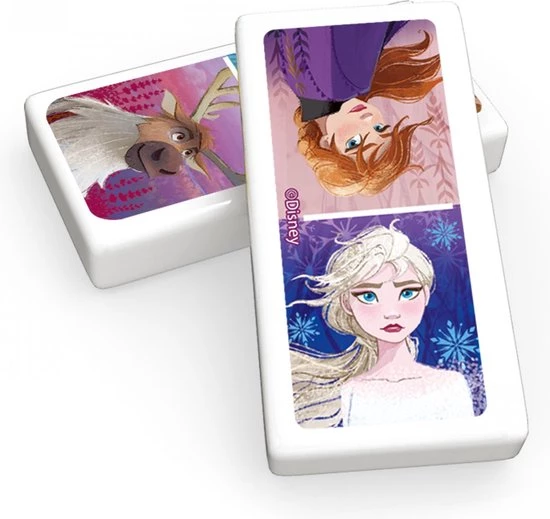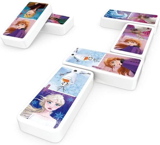 Een doos met dominostenen met de kleuren van de karakters Frozen 2.