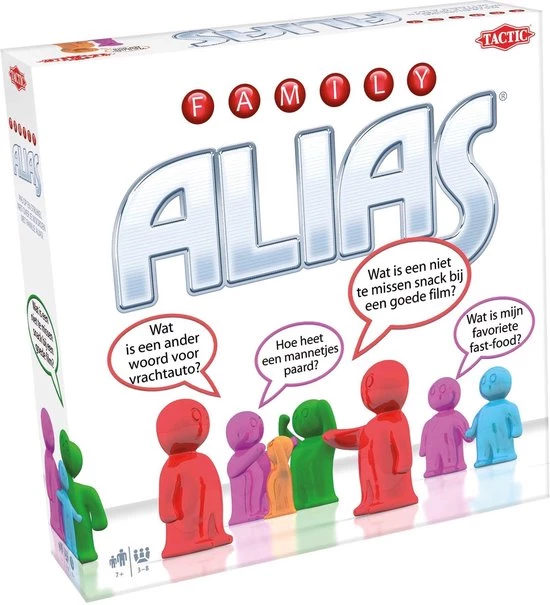 Met deze Alias uitvoering kan de hele familie meedoen! Spelers leggen zo snel mogeliijk woorden uit door middel van synoniemen, tegenovergestelden of omschrijvingen. De spinner wijst de speler aan die moet raden! Om het nog hilarischer te maken gebruik je de TWIST ! kaarten om de woorden op een speciale manier te omschrijven! Succes gegarandeerd! Leeftijd vanaf 7 jaar.