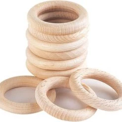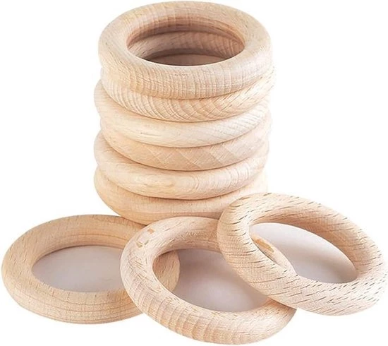 | Verpakkingsinhoud | Deze, set, bevat, tien, gladde, beukenhouten, ringen. |