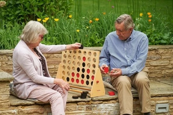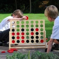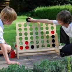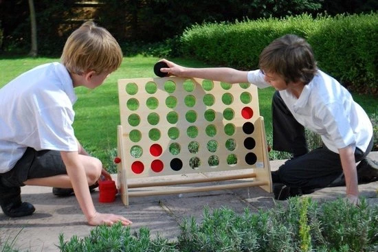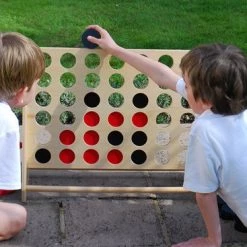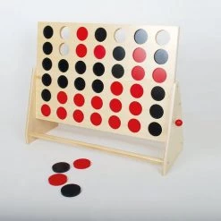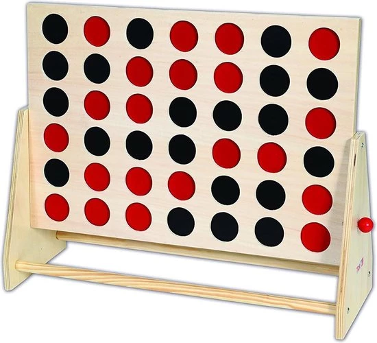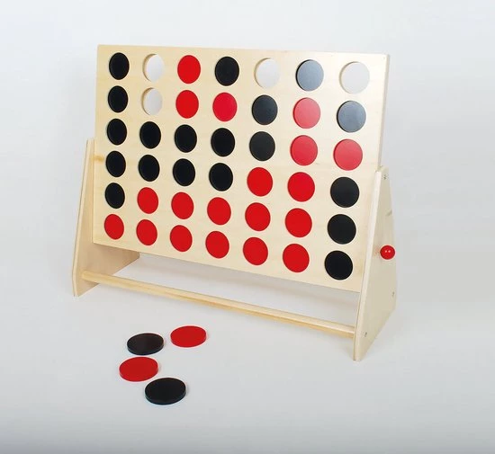 Een grote houten versie van het traditionele 4 op een rij spel met een stevig frame en glad afgewerkte houten zwarte en rode fiches. De robuuste multiplex constructie is van uitstekende kwaliteit en ideaal om buiten te spelen. Gebruik op de conventionele manier – race met je partner om een ??rij van vier te maken met je tellers, voor het oefenen van eenvoudige telvaardigheden of voor het maken van patronen – een geweldige manier om motorische vaardigheden en logica te versterken en om de concentratie te verbeteren. Verwijder eenvoudig de borgpennen aan de zijkant om het frame om te draaien en de tellers eruit te laten vallen.