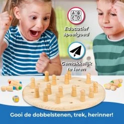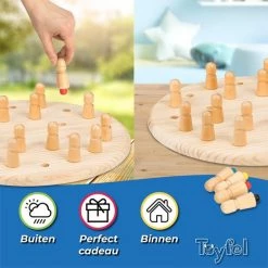 Spannend plezier voor alle leeftijden! Onthoud welke kleur op welke plaats op het bord staat – dit is de enige manier om punten te verzamelen in het memoryspel. Speel een spelletje houten memory met z’n tweeën of tegen elkaar in teams en ontwikkel spelenderwijs concentratie en motoriek.